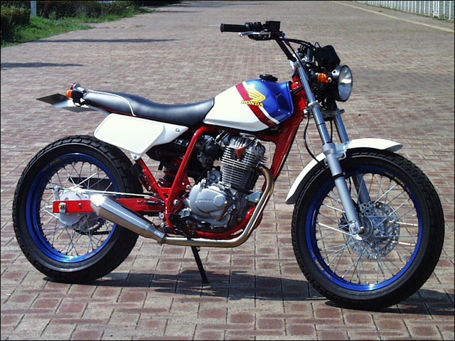 フロントホイールには鮮やかなブルーのアルミリムを採用し、パイピング入りのセミダブルシートからリアフェンダーにかけては、ややオーソドックスなデザインにまとめられている。